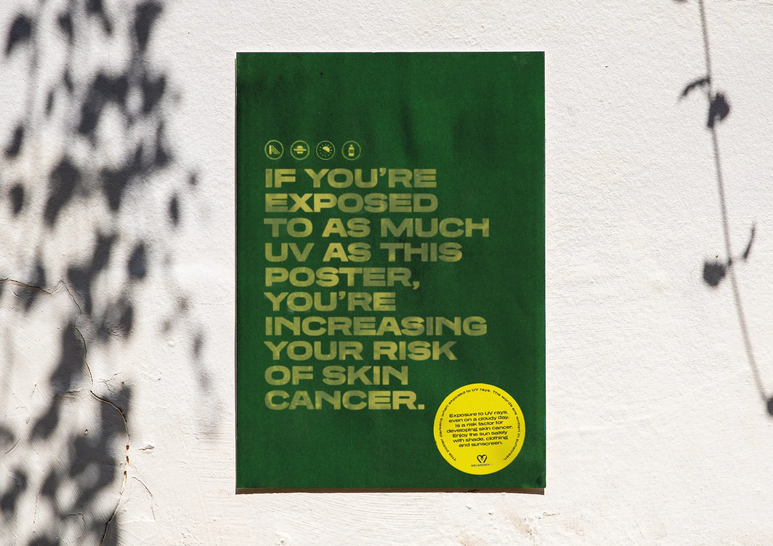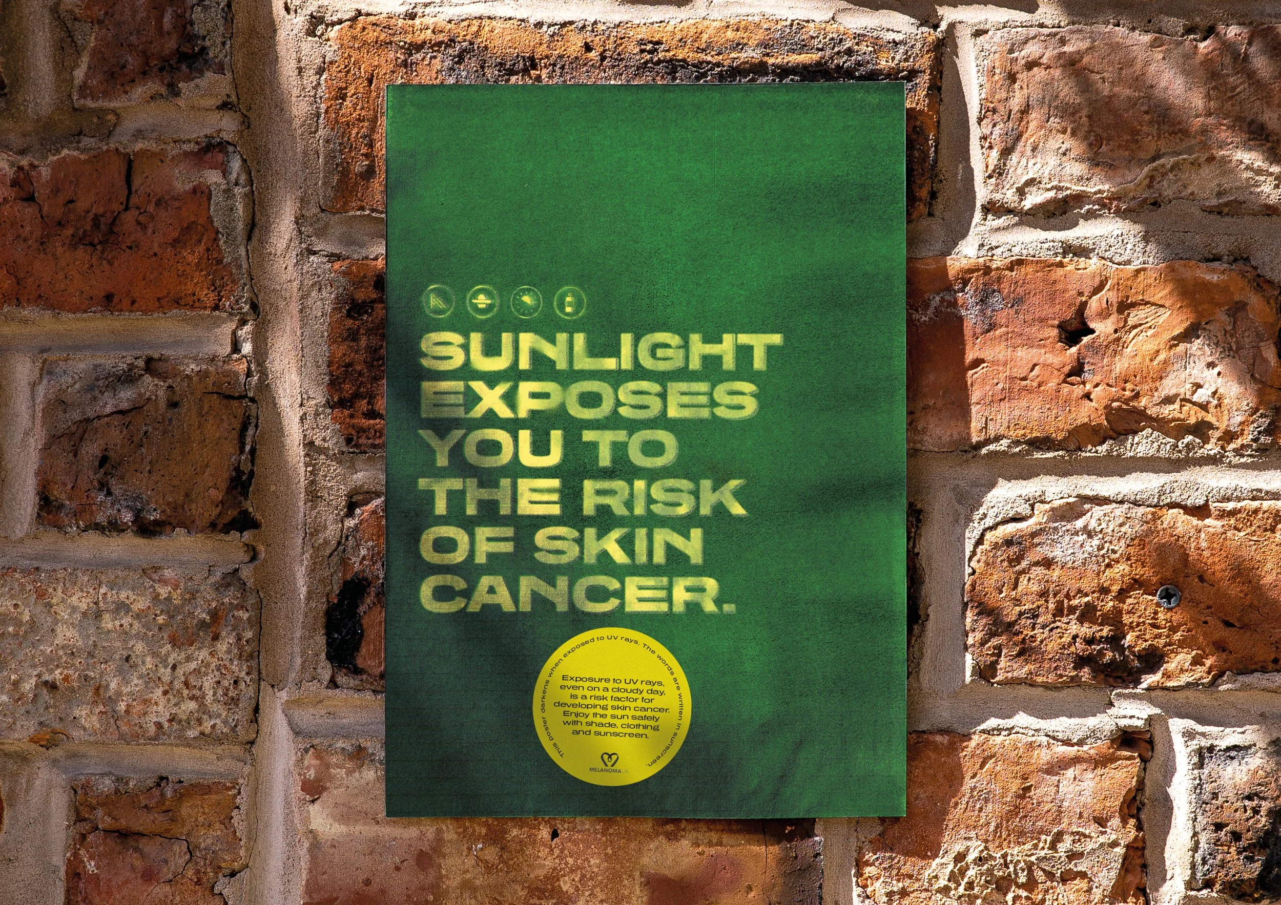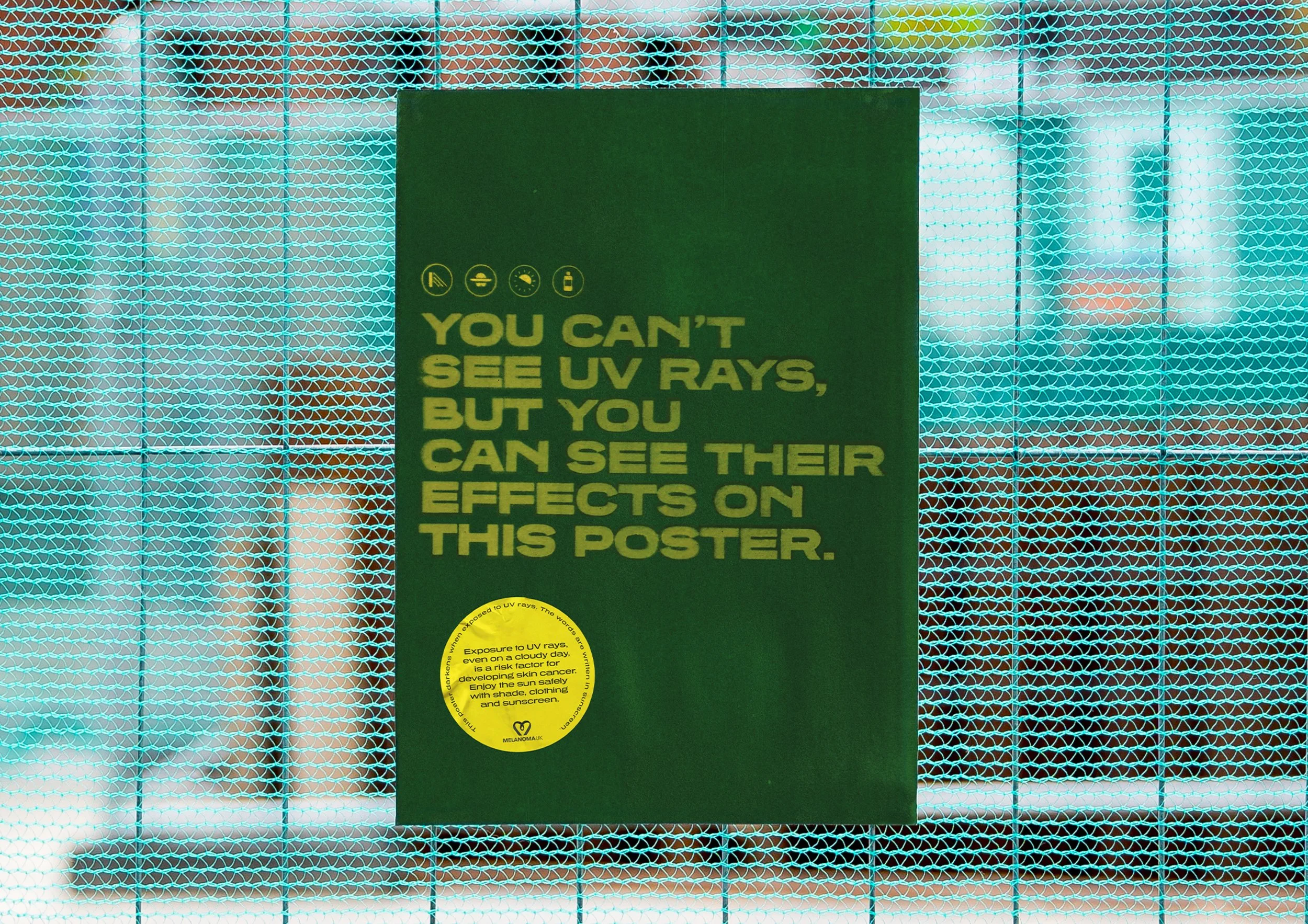 We created posters made from specialised paper that reacts to UV rays. When exposed, the paper itself darkens and burns. We printed warnings onto the paper using sunblock, showing how important it can be in protecting your skin.